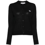 Black, wool, ribbed cuffs and hem, embroidered logo at the chest, button fastening, round neck, long sleeves. Baby Fox wool cardigan Size and Fit - This piece fits true to size. We recommend you get your regular size. Model is 1,75m / 5ft 8in wearing size S