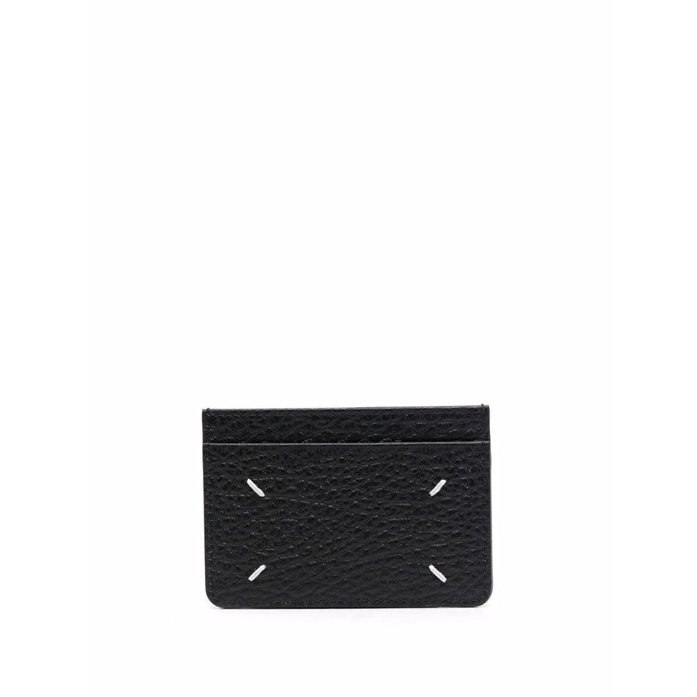 Black leather asymmetric card holder from Maison Margiela featuring grained texture, tonal stitching and card slots. Leather credit holder Size and Fit - Width 3,94 in / 10 cm