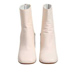 Maison Margiela White Calf Leather Can Heel Boots Shoes