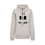 Cotton Mansel Hoodie by Marant Etoile, hood with adjustable drawstring, ribbed cuffs, front kangaroo pocket, ribbed hem, iconic brand monogram printed in contrasting color on front, regular fit.