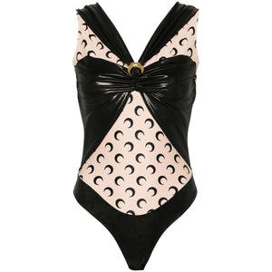 black/multicolour stretch-design all-over graphic print cut-out detailing brooch detail ruched detailing V-neck V-back sleeveless pull-on style Draped viscose bodysuit Size and Fit - This piece fits true to size. We recommend you get your regular size. Model is 1,75m / 5ft 8in wearing size S