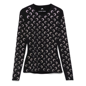 black recycled polyamide stretch-design bodycon design crescent moon pattern rhinestone embellishment crew neck long sleeves straight hem Moon Strass crewneck top Size and Fit - This piece fits true to size. We recommend you get your regular size. Model is 1,75m / 5ft 8in wearing size S