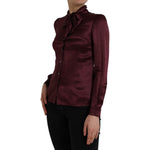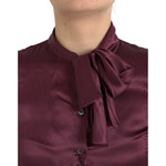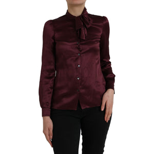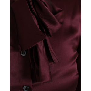 Dolce & Gabbana Maroon Ascot Collar Long Sleeve Top Blouse