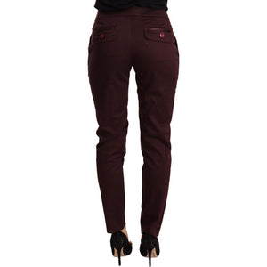 穿上这款时尚的 Just Cavalli 栗色紧身裤,尽显优雅气质。这款修身裤采用中腰设计,配有时尚拉链和纽扣开合,既舒适又无缝。标志性的标志细节巧妙地点缀了这款牛仔裤,彰显了其卓越的意大利工艺。