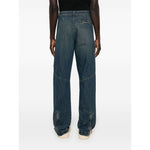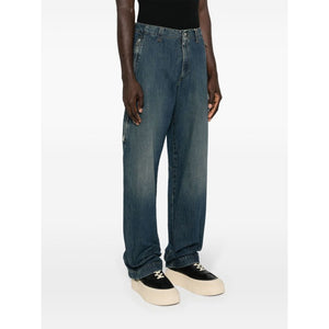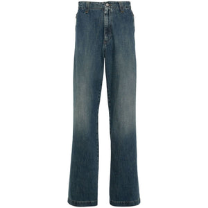 indigo blue cotton washed denim mid-rise wide leg belt loops two side zip-fastening pockets rear welt pocket signature single-stitch logo front button and zip fastening Straight denim jeans Size and Fit - This piece fits true to size. We recommend you get your regular size. Model is 1,84m / 6ft 1in wearing size 48 (IT)