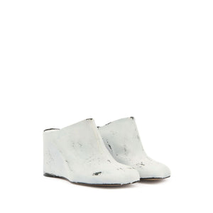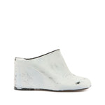 white asymmetric toe leather sole wedge heel Leather heel mules Size and Fit - Heel 8 cm