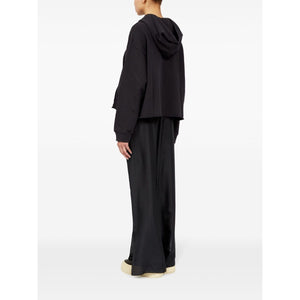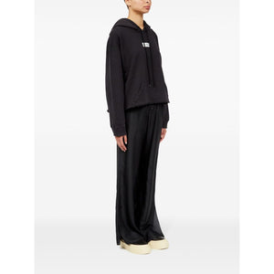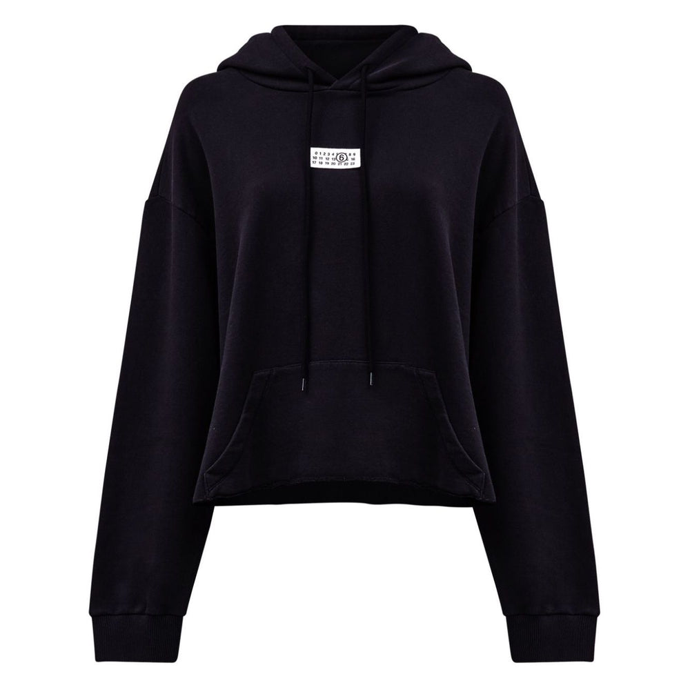 black/white cotton jersey texture drawstring hood drop shoulder long sleeves signature numbers motif front pouch pocket raw-cut hem Logo cotton hoodie Size and Fit - This piece fits true to size. We recommend you get your regular size. Model is 1,75m / 5ft 8in wearing size S