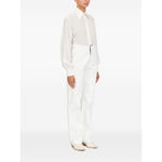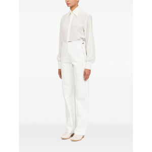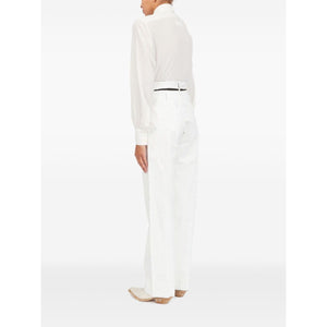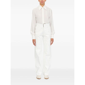 white concealed front fastening two side slash pockets rear button-fastening jetted pocket belted loops Wax trousers Size and Fit - This piece fits true to size. We recommend you get your regular size. Model is 1,75m / 5ft 8in wearing size 40 (IT)