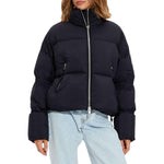 Moose Knuckles short nylon down jacket with down padding, zip fastening and two front pockets, drawstring on the sleeves