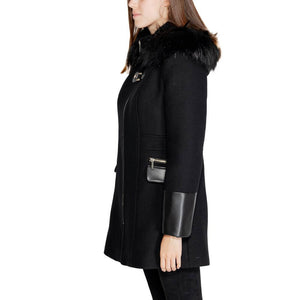 The Morgan De Toi women’s coat, model 222-GSIBIL, is an elegant and sophisticated garment, perfect for facing the cold season in style. Crafted from a high-quality blend of 60% wool, 30% polyester, and 10% polyamide, it ensures warmth and comfort throughout winter. The design features a front zip closure with a gold-tone hook detail at the collar. The hood is adorned with a wide faux fur trim, while the cuffs and pockets are finished with faux leather inserts, adding a modern and refined touch. Feminine lines and attention to detail make this coat ideal for both formal occasions and everyday wear.