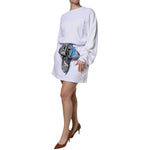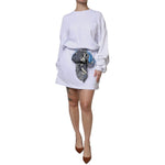 MSGM White Cotton Belted Long Sleeves Crew Neck Mini Dress