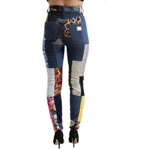 活力拼布紧身牛仔裤