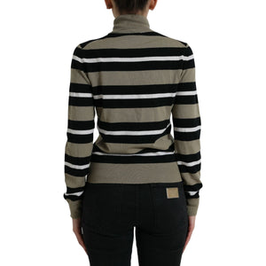 这款华丽的Dolce & Gabbana 高领套头衫让您沉醉于意大利工艺的精髓。这款 100% 纯羊毛毛衣非常适合那些欣赏生活中美好事物的人,它具有迷人的多色条纹图案,散发着精致和时尚气息。这款毛衣饰有标志性的徽标细节,是奢华时尚的证明。这款毛衣在意大利制造,其华丽的设计和无可挑剔的品质一定会让您的衣橱更上一层楼。