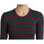 这款精美的 Dolce & Gabbana 栗色和灰色条纹圆领毛衣兼具优雅与舒适。这款毛衣采用意大利工艺,非常适合为您的休闲服装增添一丝奢华气息。其柔软的粘胶纤维和涤纶混纺确保温暖和迷人的垂坠感。