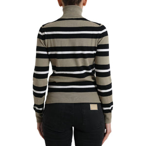 多色条纹羊毛高领毛衣