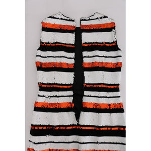 穿上这款令人惊艳的Dolce & Gabbana无袖紧身连衣裙,走进高级时尚的世界。这款连衣裙采用无可挑剔的意大利工艺制作而成,以白色、橙色和黑色的大胆条纹为特色,确保您在任何高调活动中留下难忘的印象。它是一种奢华的羊毛和弹性纤维混纺面料,既舒适又有一点弹性,再加上光滑的拉链后背,完美贴合。这件连衣裙不仅仅是一件衣服——它是奢华和独特的见证。