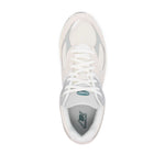 ivory white/light grey/ecru calf suede mesh panelling round toe logo patch to the side logo plaque at the tongue branded heel counter padded ankle branded insole jersey lining chunky rubber sole front lace-up fastening 2002R sneakers Size and Fit - HEEL: 4.0 Centimetres.