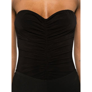 black ruched bodice scoop neck sleeveless Just a reminder that this piece must be tried on over your own garments. Mio bodysuit Size and Fit - This piece fits true to size. We recommend you get your regular size. Model is 1,75m / 5ft 8in wearing size S
