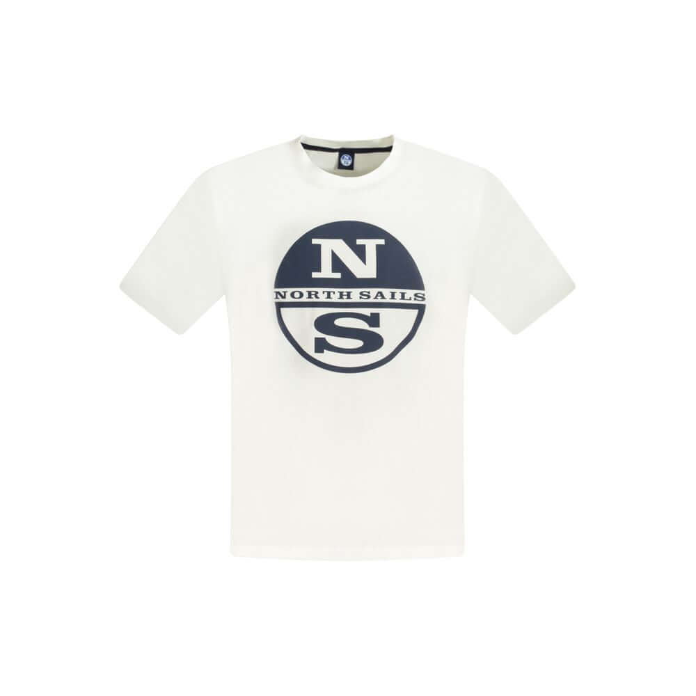 Elevate your off-duty wardrobe with the sophisticated simplicity of North Sails. This crisp white T-shirt is a contemporary classic; it’s all about clean lines and subtle branding. Featuring a striking print and tasteful logo detailing, it seamlessly blends comfort with style. Crafted from 100% cotton, this tee offers breathability and a soft touch, perfect for any casual occasion or a relaxed weekend vibe.