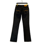 Elevate your denim game with these sleek Nudie Jeans, synonymous with quality and style. Crafted from the finest cotton, these black jeans feature a classic button and zip closure, providing a secure and smooth fit. The front pockets include a small pocket detail, while the back is adorned with welt pockets. The iconic logo patch and contrasting stitching add a signature touch to this timeless piece. Made with care in Italy, these jeans are a staple for any fashion-forward wardrobe.