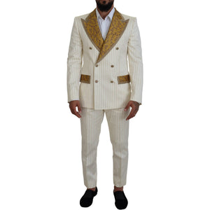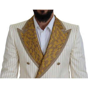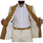 这款精美的 Dolce & Gabbana 双排扣西装让您尽显优雅气质。非常适合那些追求修身款式、将传统剪裁与现代优雅融为一体的人士。米白色和金色的色调散发着奢华气息,而高品质的工艺确保了令人惊叹的轮廓和持久的穿着感。