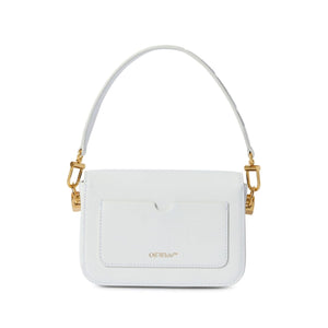 small Binder shoulder bag from Off-White featuring white, leather, gold-tone hardware, adjustable detachable shoulder strap, signature Binder Clip fastening, foldover top with magnetic fastening, rear patch pocket and internal zip-fastening pocket. Binder small leather shoulder bag Size and Fit - Width 6,69 in / 17 cm