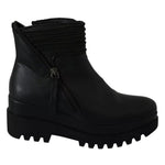 Ovyé Black Leather Zipper Ankle Boots Shoes