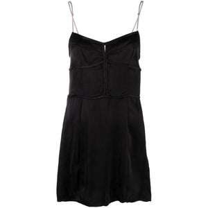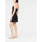chain-straps slip minidress from PALM ANGELS featuring anthracite grey, V-neck, corset style, front hook and eye fastening, spaghetti straps, logo plaque, concealed side zip fastening and straight hem. Chain-straps mini dress