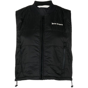 black/white quilted embroidered logo at the chest tonal hardware baseball collar front zip fastening sleeveless two side zip-fastening pockets full lining drawstring hem cropped Classic logo 100 gr vest Size and Fit - This piece fits true to size. We recommend you get your regular size. Model is 1,75m / 5ft 8in wearing size S