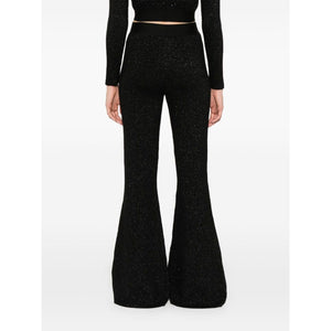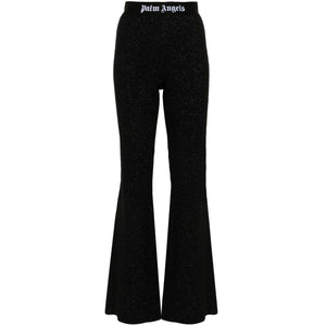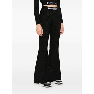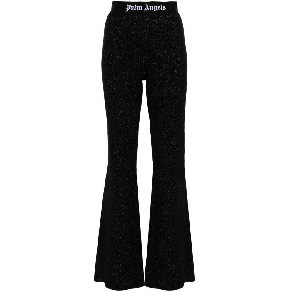 black knitted construction lurex detailing elasticated waistband logo-tape detailing flared pull-on style Logo lurex flared trousers Size and Fit - This piece fits true to size. We recommend you get your regular size. Model is 1,75m / 5ft 8in wearing size S