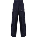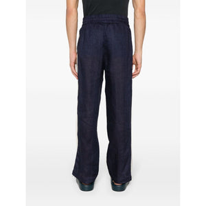 navy blue/off-white linen/flax cotton slub texture side stripe detailing knitted panels raised seam detail embroidered logo at the leg straight leg elasticated waistband two side slit pockets authenticity QR code This item contains at least 50% materials which are certified or widely recognised as having a lower environmental impact through production and/or manufacturing processes that reduce water consumption and the use of harmful chemicals, or re-use by-products of the production process. Learn more about what makes a product Conscious on our Conscious Criteria page Logo track pants Size and Fit - This piece fits true to size. We recommend you get your regular size. Model is 1,84m / 6ft 1in wearing size M