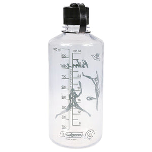 Transparent bottle, black lid, green graphics, 1000 ml. Printed bottle