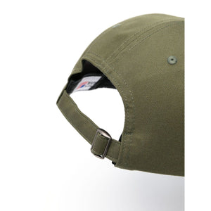 olive green six-panel construction flat peak tonal stitching embroidered logo to the front eyelet detailing fabric-covered button at the crown adjustable strap to the rear Logo baseball cap Size and Fit - BRIM: 7.0 Centimetres. CIRCUMFERENCE: 55.0 Centimetres.