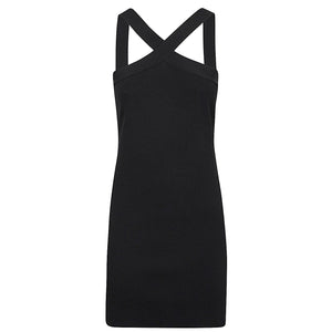 Short, black, solid color dress with wide crossover straps and straight hem. Viscose blend dress Size and Fit - This piece fits true to size. We recommend you get your regular size. Model is 1,75m / 5ft 8in wearing size S