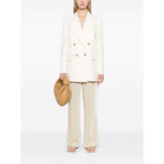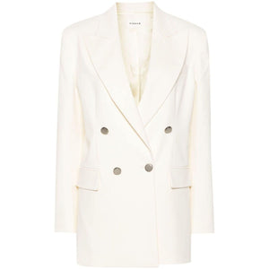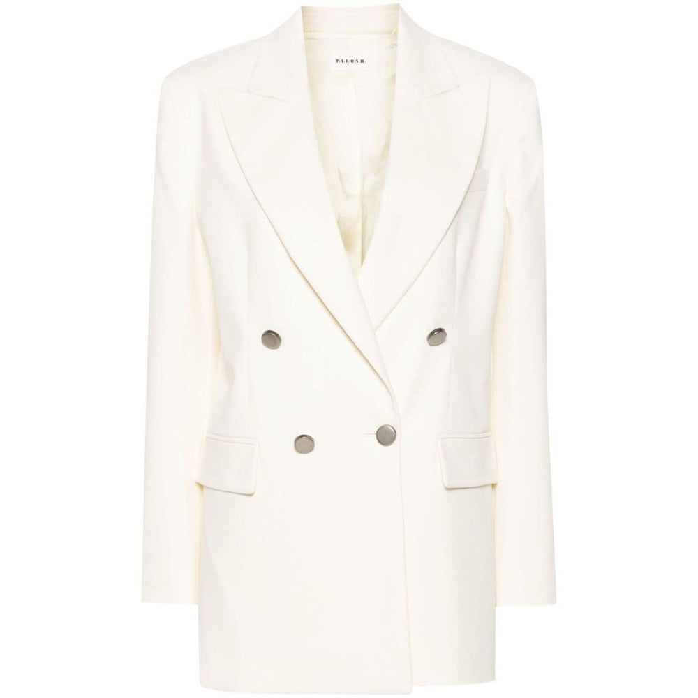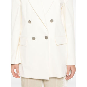 white cotton blend stretch-design peak lapels double-breasted button fastening long sleeves chest welt pocket two front flap pockets straight hem Crew cotton blend blazer jacket Size and Fit - This piece fits true to size. We recommend you get your regular size. Model is 1,75m / 5ft 8in wearing size S