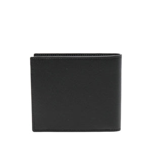logo detail Leahter bifold wallet Size and Fit - DEPTH 2 cm. LENGTH 11 cm. WIDTH 9 cm. .