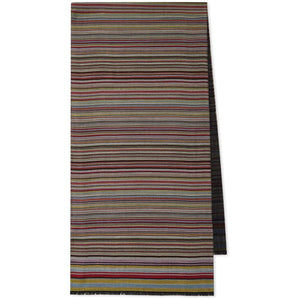 dark red frayed edge wraparound style Signature Stripe wool and silk scarf