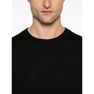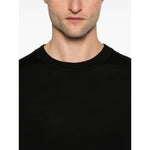 black crew neck long sleeves ribbed trim embroidered logo at the sleeve Wool crewneck sweater