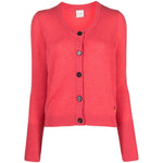 cashmere knitted cardigan from Paul Smith featuring pink, cashmere, knitted construction, round neck, front button fastening, long sleeves and ribbed cuffs and hem. Cashmere cardigan Size and Fit - This piece fits true to size. We recommend you get your regular size. Model is 1,75m / 5ft 8in wearing size S