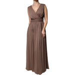 Peserico Brown Sleeveless Deep V-neck A-line Long Maxi Dress