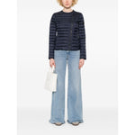 navu blue two-way zip fastening two side zip-fastening pockets crew neck logo patch at the sleevecorto + zip obliqua Nylon down jacket Size and Fit - This piece fits true to size. We recommend you get your regular size. Model is 1,75m / 5ft 8in wearing size 40 (IT)