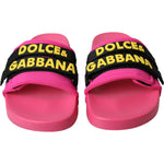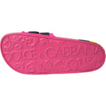 Dolce & Gabbana Pink Black Logo Beachwear Flats Sandals Shoes