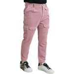 粉色灯芯绒棉质弹力紧身工装牛仔裤