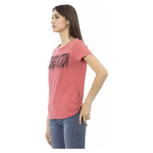 优雅粉色短袖 T 恤,别致印花