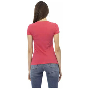 Trussardi Action 的这款时尚短袖 T 恤彰显休闲优雅。它非常适合为您的日常装扮增添一丝精致感,采用 V 领剪裁和独特的正面印花,使其与众不同。这款上衣采用柔软的棉和粘胶混纺面料制成,既舒适又耐用。