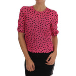 别致的粉红色波尔卡圆点丝绸衬衫