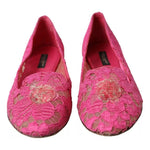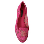Dolce & Gabbana Pink Taormina Lace Slip On Flats Shoes