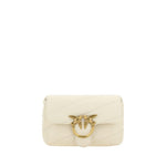 Calfskin Love Baby Shoulder Bag by Pinko, front closure with magnetic button, iconic gold-plated Love Birds logo embossed on the front, quilted and padded design, double internal compartment, sliding chain shoulder strap, iconic brand monogram embroidered tone-on-tone on the back.