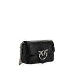 Calfskin Love Baby Shoulder Bag by Pinko, front closure with magnetic button, iconic gold-plated Love Birds logo embossed on the front, quilted and padded design, double internal compartment, sliding chain shoulder strap, iconic brand monogram embroidered tone-on-tone on the back.