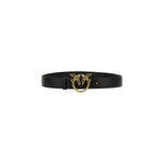 Calfskin Love Berry Belt by Pinko, smooth leather design, round buckle with iconic Love Birds logo plaque. Thickness: 3 cm.